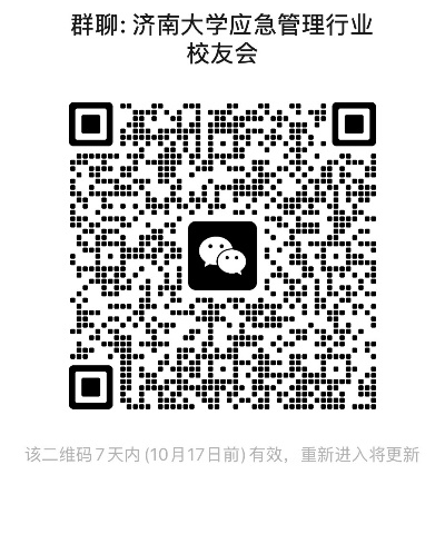 请各位校友扫描下方二维码,准确填写个人信息(请在填写时注明是否有意向在校友会理事会中担任会长、副会长、秘书长、理事等职务,以便筹备组参考),并加入“济南大学应急管理行业校友群”。校友亦可直接与学校校友工作办公室取得联系,咨询相关事宜。